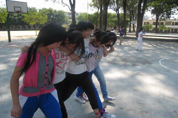其后,小学组和初中组分别进行了“纸衣往返接力”和“夹气球接力”两项接力比赛。不同于传统比拼速度的接力比赛,这两项比赛在考验同学们速度的同时,更是考验他们的合作能力和平衡协调能力。C班1队就是因为在关键时刻掉了接力的纸张而功亏一篑,与胜利失之交臂。而在夹气球接力中,两人背对背夹气球前进,若气球掉了,就要返回原点开始。这个游戏打破了男女同学间的隔阂,他们通过这次合作不再腼腆,有了交流并逐步建立友谊。
