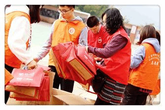 随后,志愿者们为当地员工分送暖冬慰问物资,同学们拿到礼物后,脸上露出开心幸福的笑容。