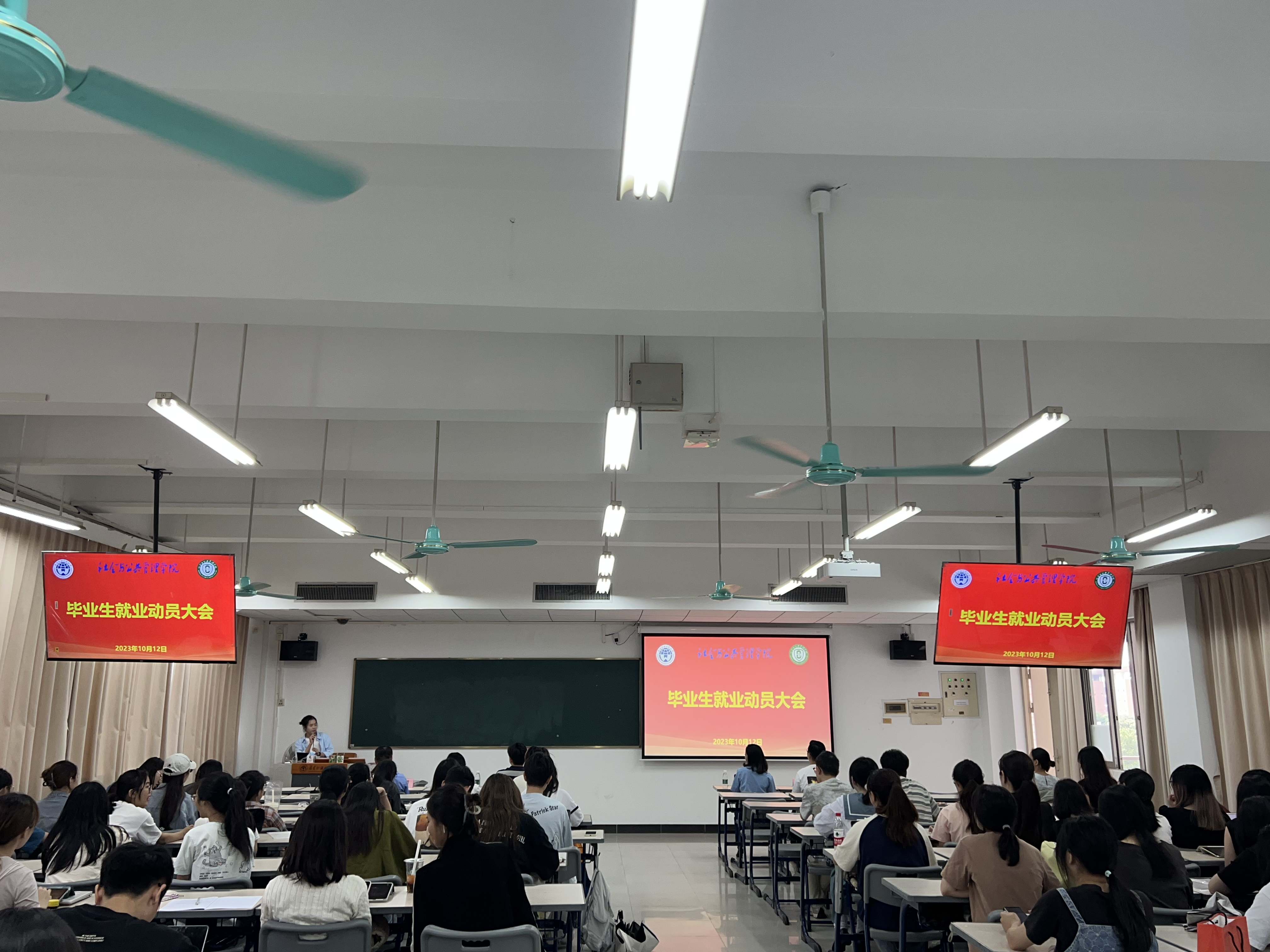 为帮助2024届毕业生了解最新就业形势,找准自身定位,尽早做好自身生涯规划。2023年10月12日下午15:00,太阳集团tyc151于教学区D410召开了2024届毕业生就业动员大会。员工就业创业中心苗磊副主任、公司党委副书记陈哲、本科生辅导员莫杰、学院22级应心专硕曾玉芬、学院23级社工专硕马建恺和2024届全体本科毕业生出席本次会议。会议由学院辅导员陈思恩主持。