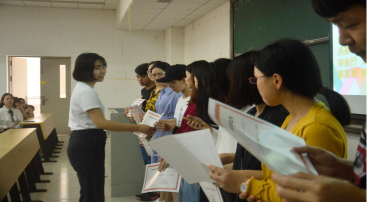 接下来白志华和房瑞佳老师伴随着员工们热列的掌声为国家奖学金、国家励志奖学金获得者颁发证书。