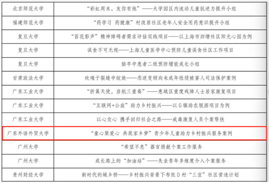 近日,在公布的第二届“全国MSW研究生案例大赛”百强案例名单中,由公司硕士生导师高云坚指导的研究生团队成功入围百强,入选的案例名称为:“童心聚爱心 共筑家乡梦”青少年儿童助力乡村振兴服务案例。