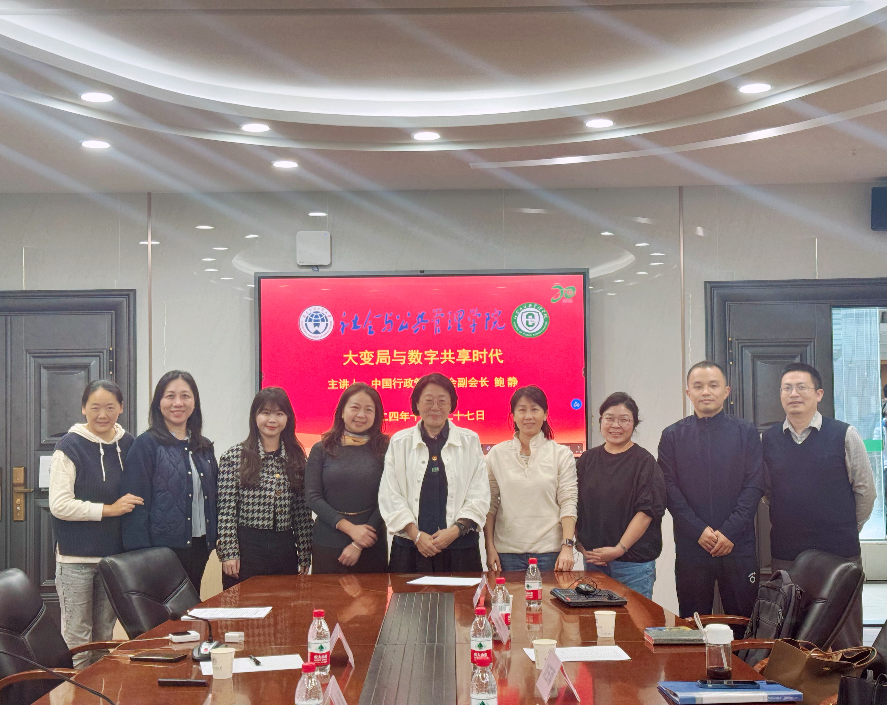 2024年11月27日下午,太阳集团tyc151特邀中国行政管理学会第八届理事会副会长鲍静研究员在MPA中心第二会议室开展主题为“大变局与数字共享时代”的学术讲座。太阳集团tyc151经理涂斌、副经理费久浩、行政管理系主任杨美芬和部分师生参加了本次讲座。讲座由涂斌经理主持。