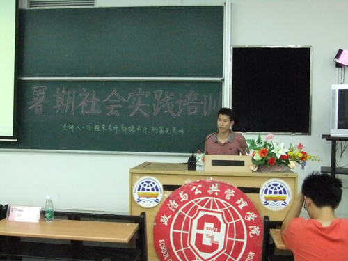 7月15日晚上6点30分,政管学院第二次暑期社会实践培训大会在教学楼F215举行。本次大会的主题是调研培训、有效沟通以及学习原理与教学方法,主讲人分别是汤程东老师、郭嫄老师,还有刘富先老师。参加暑期三下乡活动的七支队伍的大部分成员出席了大会。